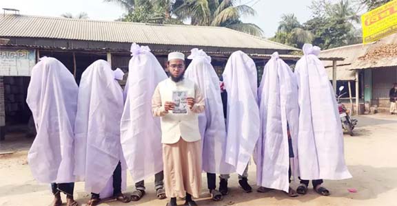 ফরিদপুরে কাফনের কাপড় পরে জাতীয় পার্টির প্রার্থীর প্রচারণা