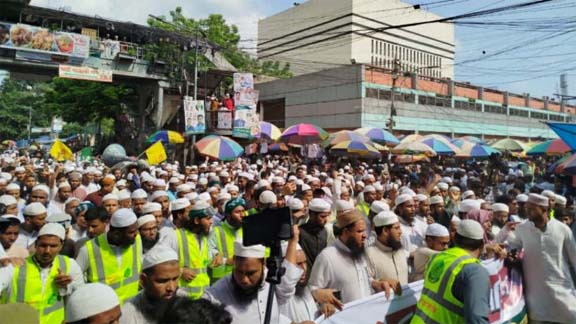 প্রাথমিকে গানের শিক্ষক নিয়োগের প্রতিবাদে রাজধানীতে ওলামা মাশায়েখদের বিক্ষোভ
