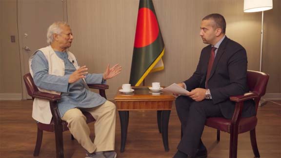 সাংবাদিক মেহদি হাসানের প্রশ্নের জবাবে ড. মুহাম্মদ ইউনূস বলেন, “বাংলাদেশে কোনো ধরনের হিন্দুবিরোধী সহিংসতা নেই।”