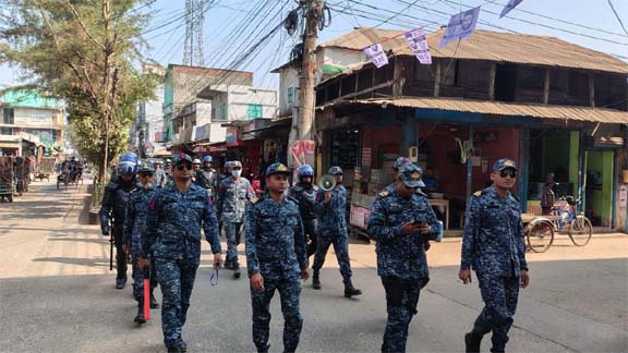 মোংলায় জাতীয় নির্বাচন ঘিরে নৌবাহিনীর পায়ে হেটে শহরে টহল