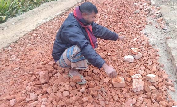 রাণীশংকৈলে নিম্ন মানের সামগ্রী দিয়ে রাস্তা নির্মাণ করার অভিযোগ